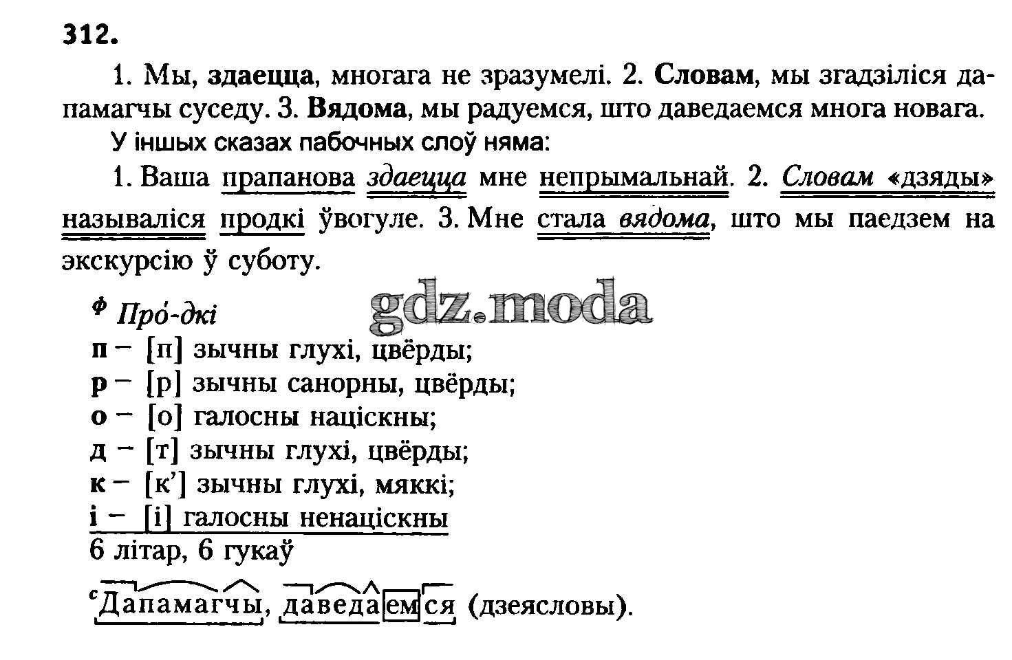 ГДЗ решение к заданию № 312 Белоруская мова 8 класс Бадзевіч З.І. Национальный институт образования 2015 ФГОС бесплатно на гдз.мода!