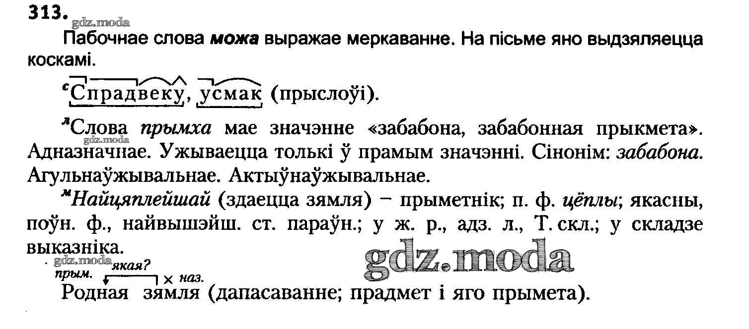 ГДЗ решение к заданию № 313 Белоруская мова 8 класс Бадзевіч З.І. Национальный институт образования 2015 ФГОС бесплатно на гдз.мода!