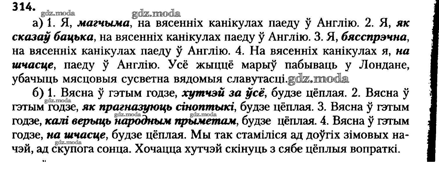 ГДЗ решение к заданию № 314 Белоруская мова 8 класс Бадзевіч З.І. Национальный институт образования 2015 ФГОС бесплатно на гдз.мода!