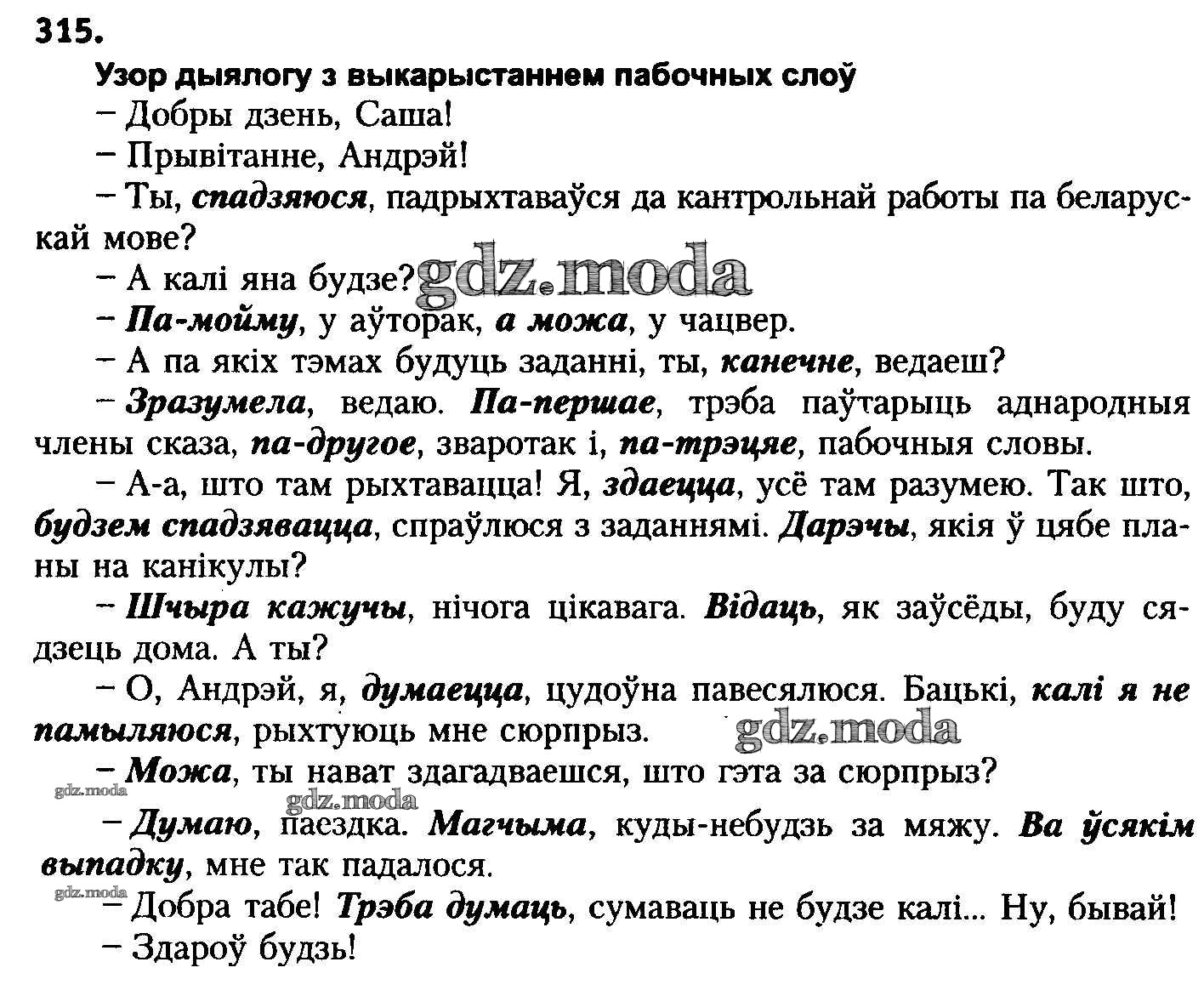 ГДЗ решение к заданию № 315 Белоруская мова 8 класс Бадзевіч З.І. Национальный институт образования 2015 ФГОС бесплатно на гдз.мода!