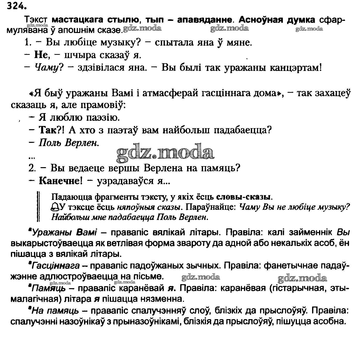 ГДЗ решение к заданию № 324 Белоруская мова 8 класс Бадзевіч З.І. Национальный институт образования 2015 ФГОС бесплатно на гдз.мода!