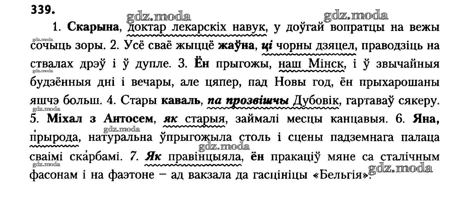ГДЗ решение к заданию № 339 Белоруская мова 8 класс Бадзевіч З.І. Национальный институт образования 2015 ФГОС бесплатно на гдз.мода!