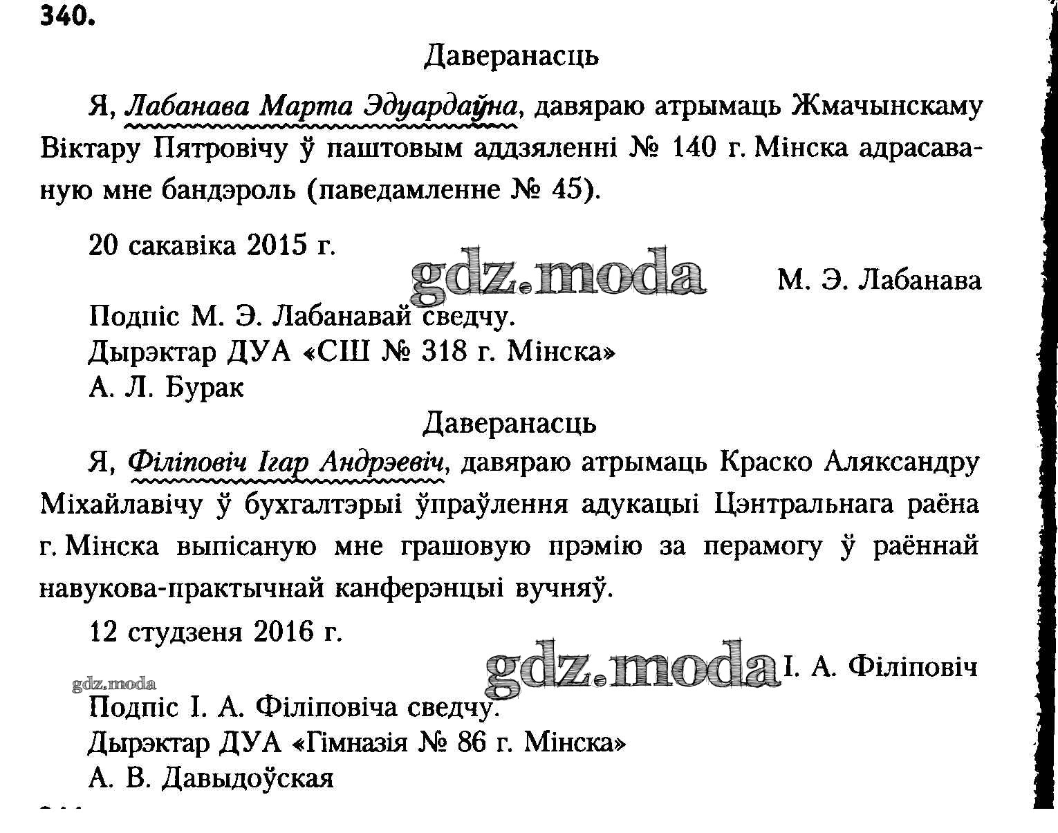 ГДЗ решение к заданию № 340 Белоруская мова 8 класс Бадзевіч З.І. Национальный институт образования 2015 ФГОС бесплатно на гдз.мода!