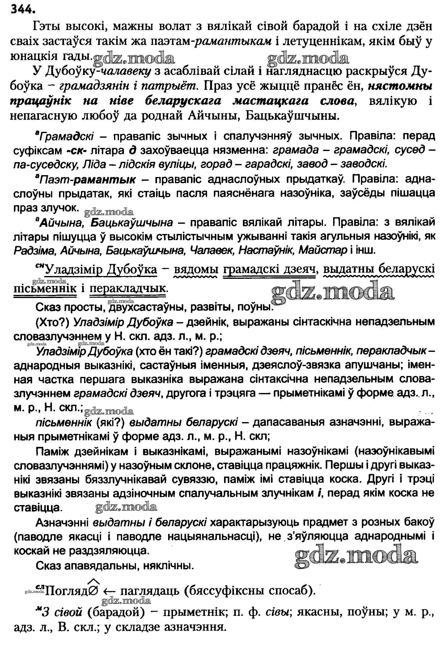 ОТВЕТ на задание № 344 Учебник по Белорусскому языку 8 класс Бадзевіч