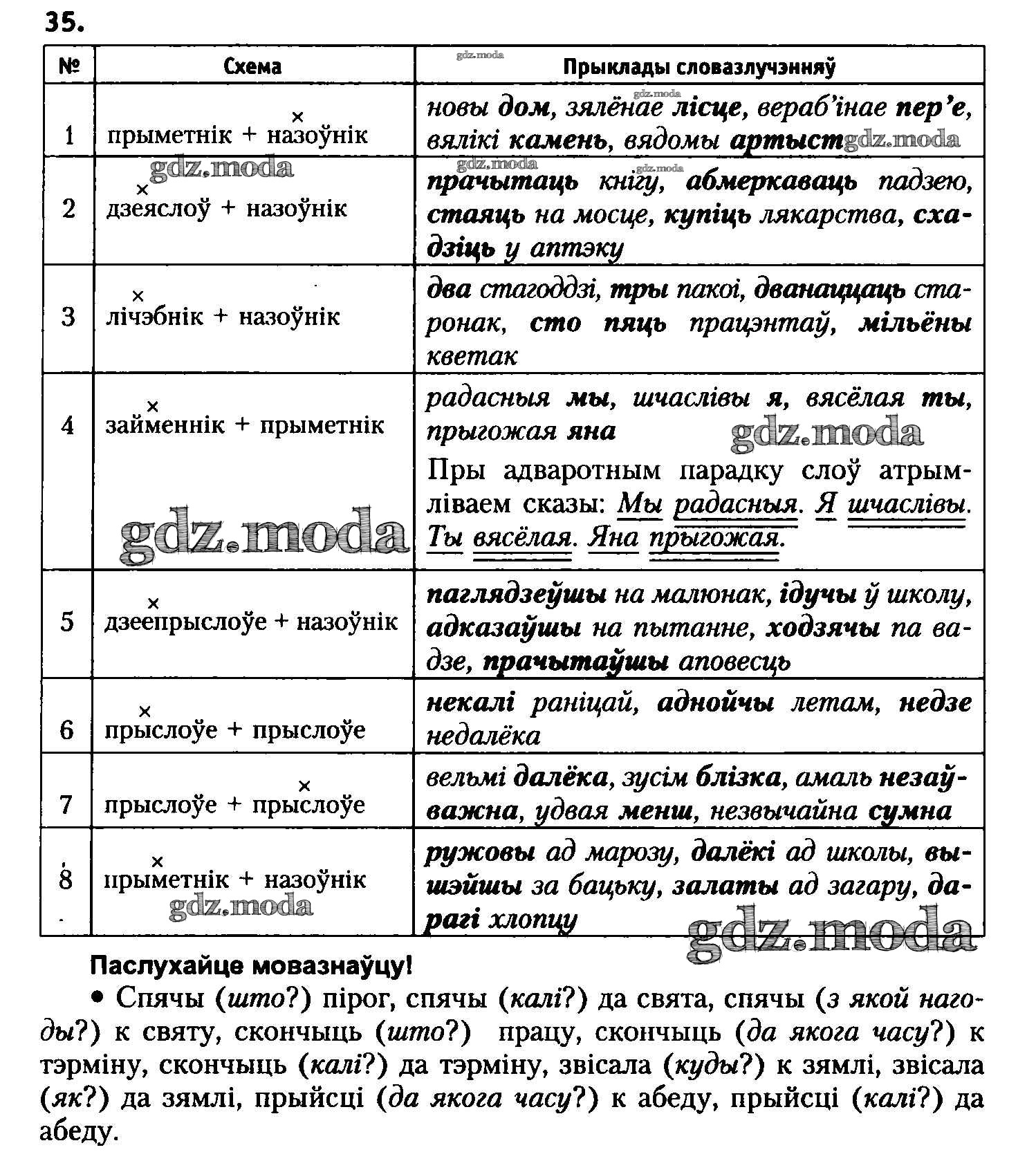 ГДЗ решение к заданию № 35 Белоруская мова 8 класс Бадзевіч З.І. Национальный институт образования 2015 ФГОС бесплатно на гдз.мода!
