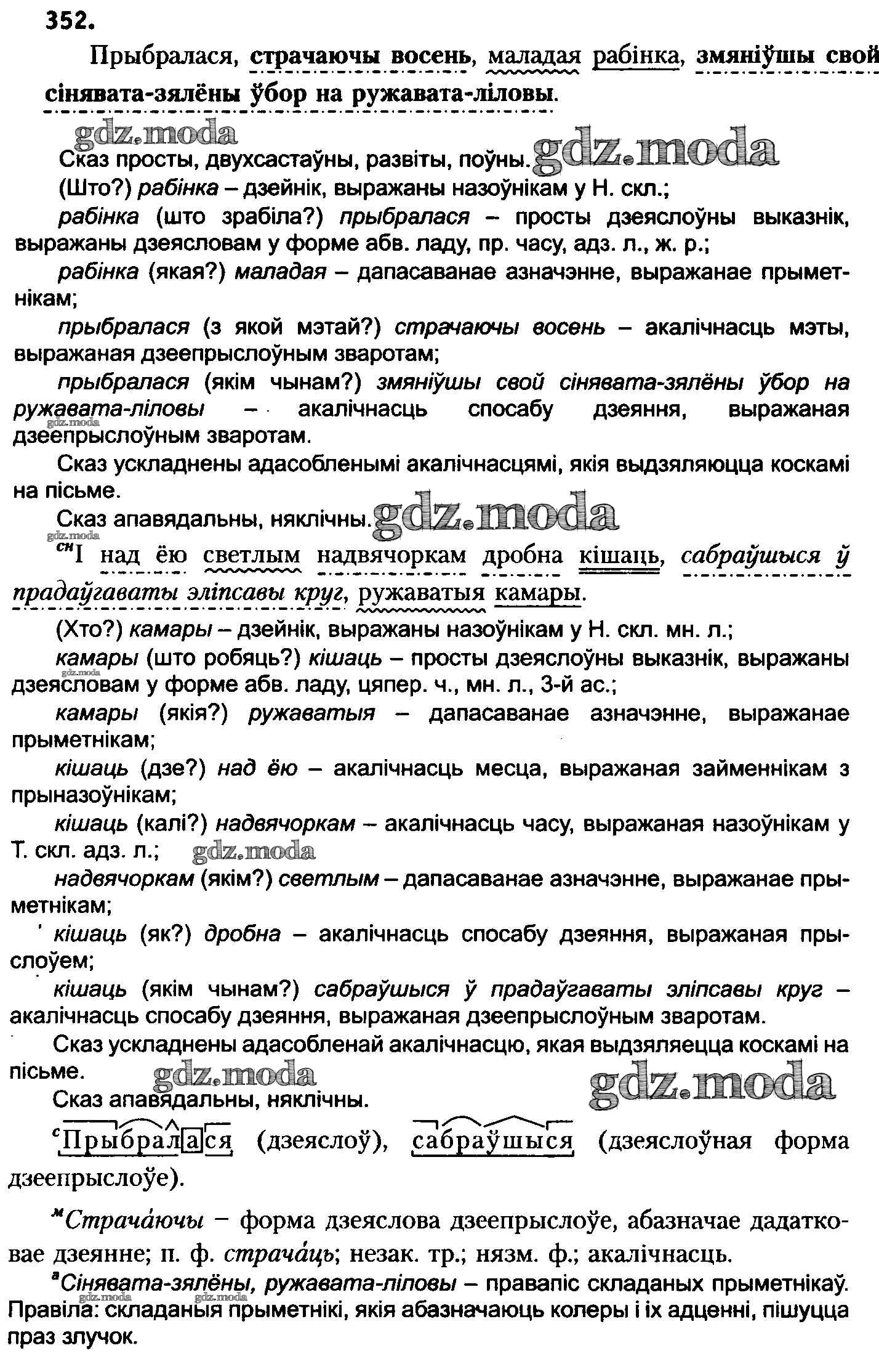 ГДЗ решение к заданию № 352 Белоруская мова 8 класс Бадзевіч З.І. Национальный институт образования 2015 ФГОС бесплатно на гдз.мода!