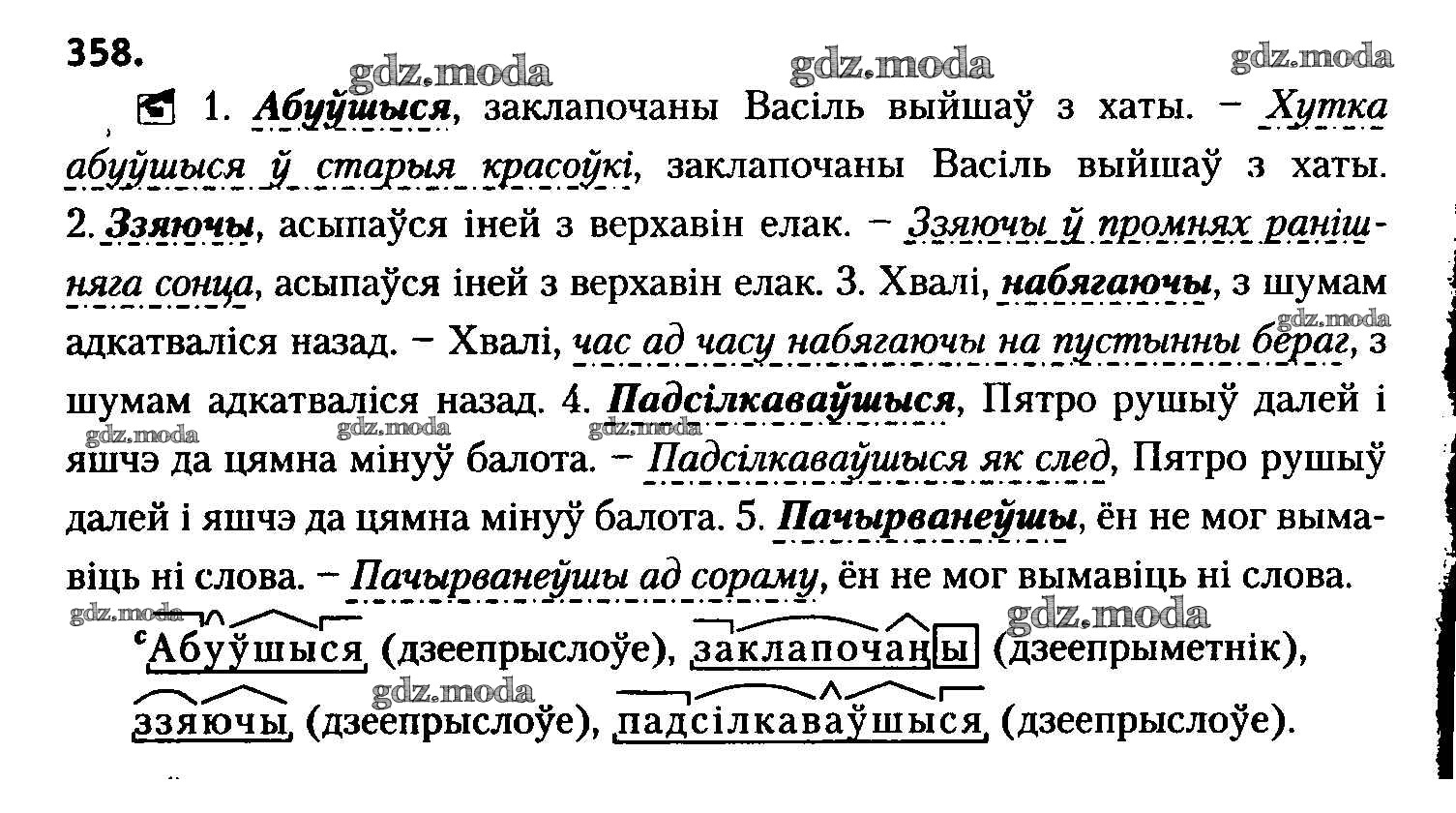 ГДЗ решение к заданию № 358 Белоруская мова 8 класс Бадзевіч З.І. Национальный институт образования 2015 ФГОС бесплатно на гдз.мода!