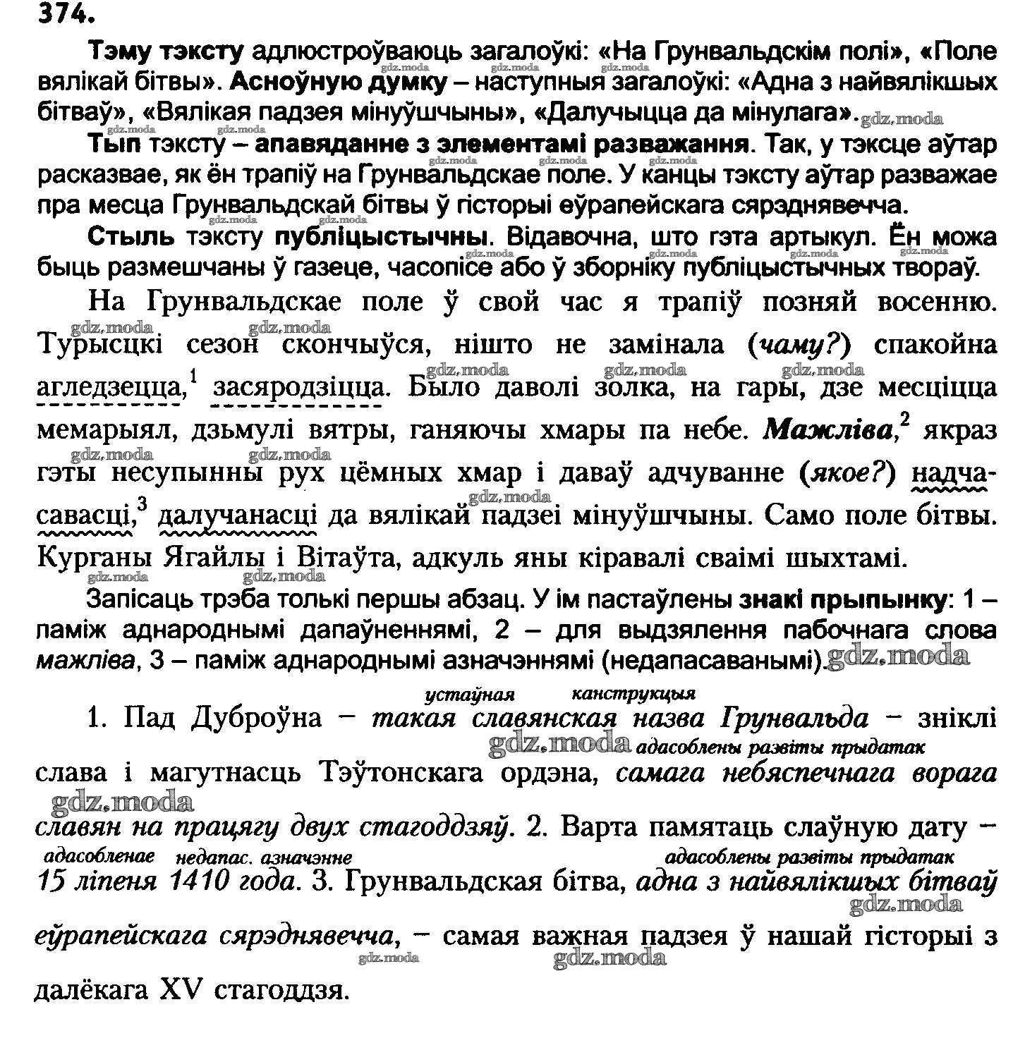 ГДЗ решение к заданию № 374 Белоруская мова 8 класс Бадзевіч З.І. Национальный институт образования 2015 ФГОС бесплатно на гдз.мода!