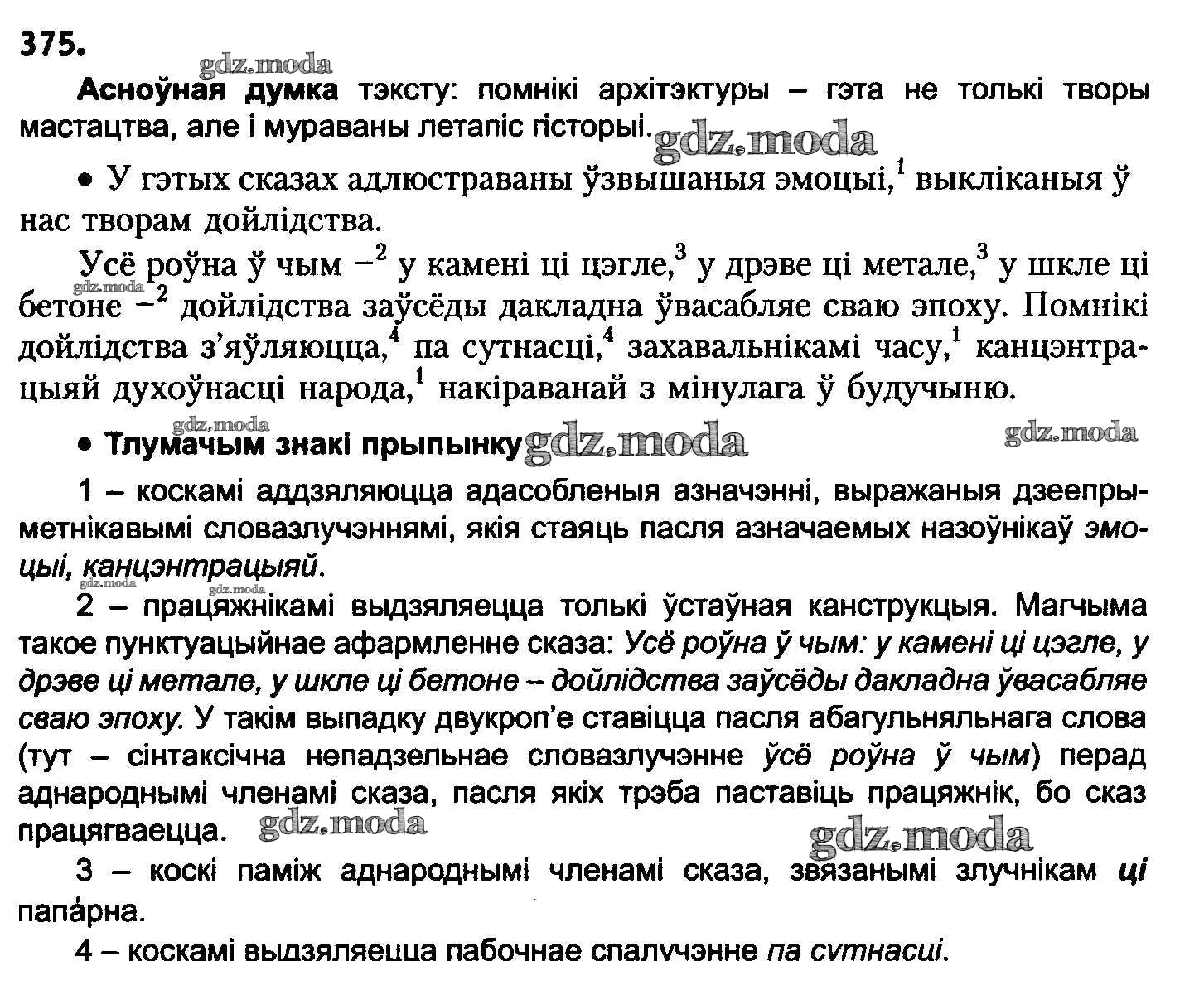ГДЗ решение к заданию № 375 Белоруская мова 8 класс Бадзевіч З.І. Национальный институт образования 2015 ФГОС бесплатно на гдз.мода!