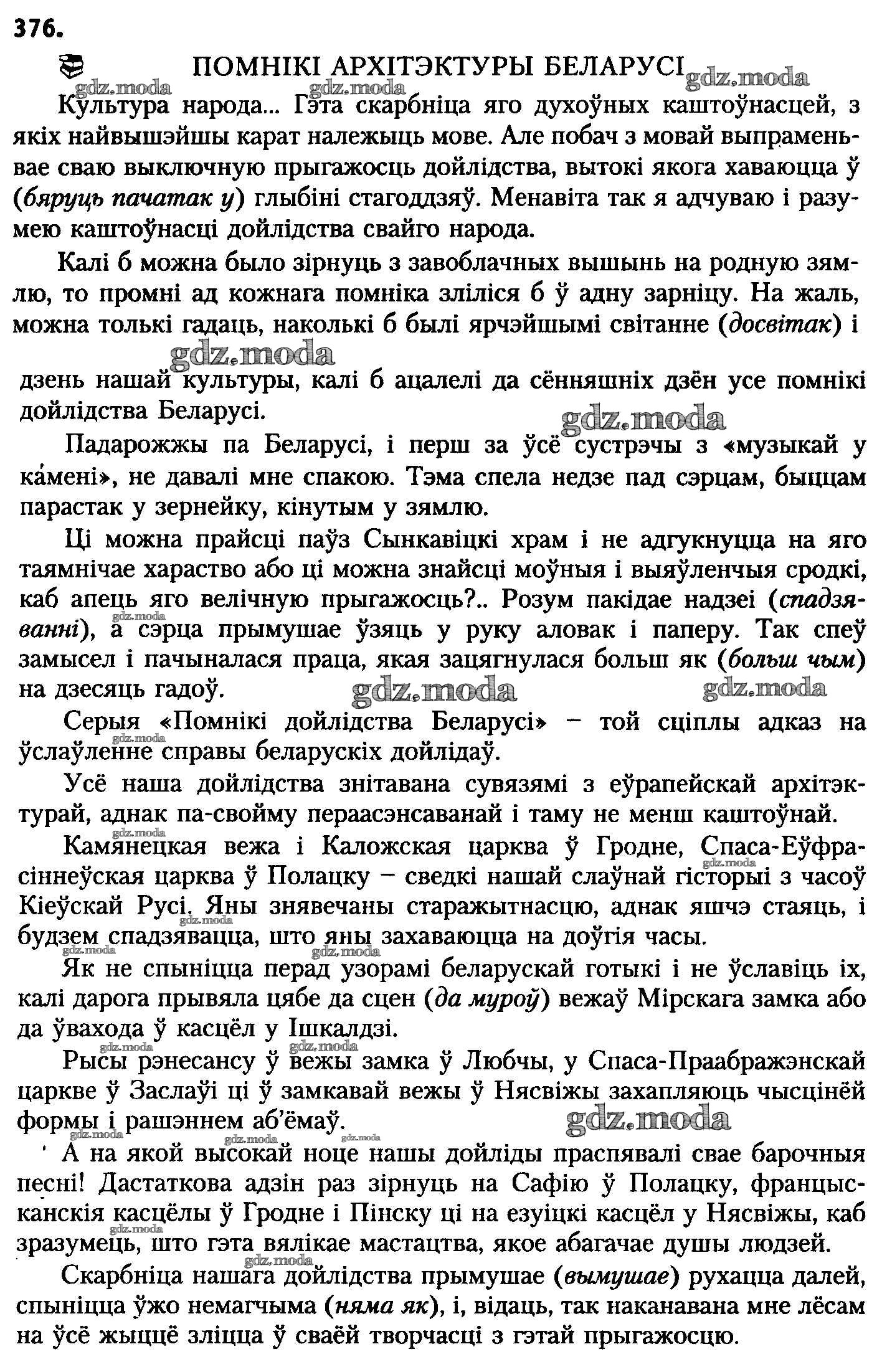 ГДЗ решение к заданию № 376 Белоруская мова 8 класс Бадзевіч З.І. Национальный институт образования 2015 ФГОС бесплатно на гдз.мода!