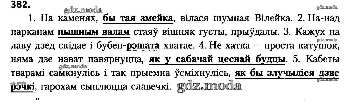 ГДЗ решение к заданию № 382 Белоруская мова 8 класс Бадзевіч З.І. Национальный институт образования 2015 ФГОС бесплатно на гдз.мода!