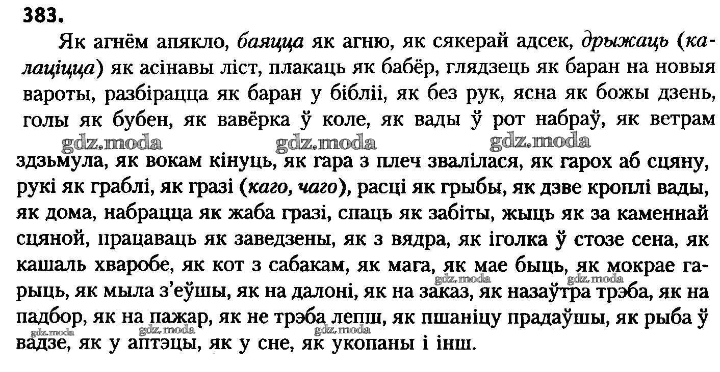 ГДЗ решение к заданию № 383 Белоруская мова 8 класс Бадзевіч З.І. Национальный институт образования 2015 ФГОС бесплатно на гдз.мода!
