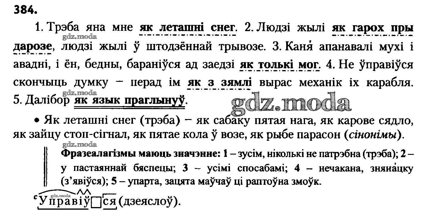 ГДЗ решение к заданию № 384 Белоруская мова 8 класс Бадзевіч З.І. Национальный институт образования 2015 ФГОС бесплатно на гдз.мода!