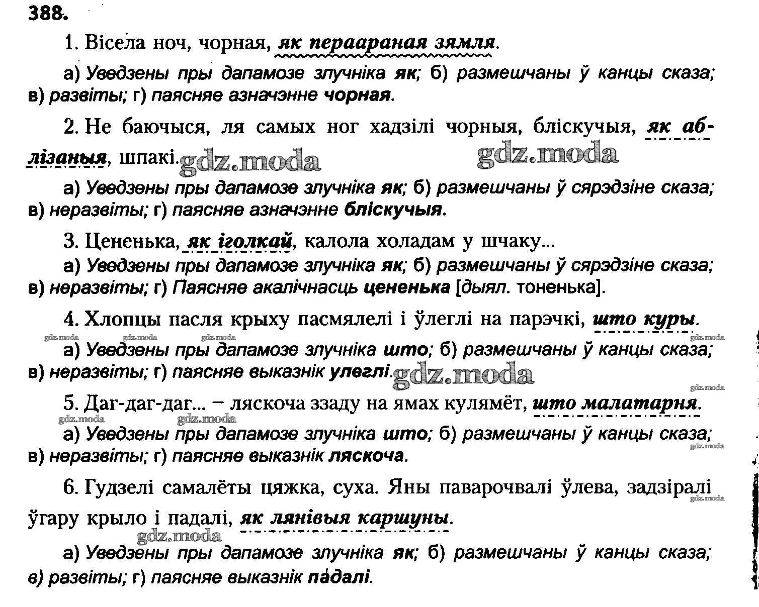ГДЗ решение к заданию № 388 Белоруская мова 8 класс Бадзевіч З.І. Национальный институт образования 2015 ФГОС бесплатно на гдз.мода!