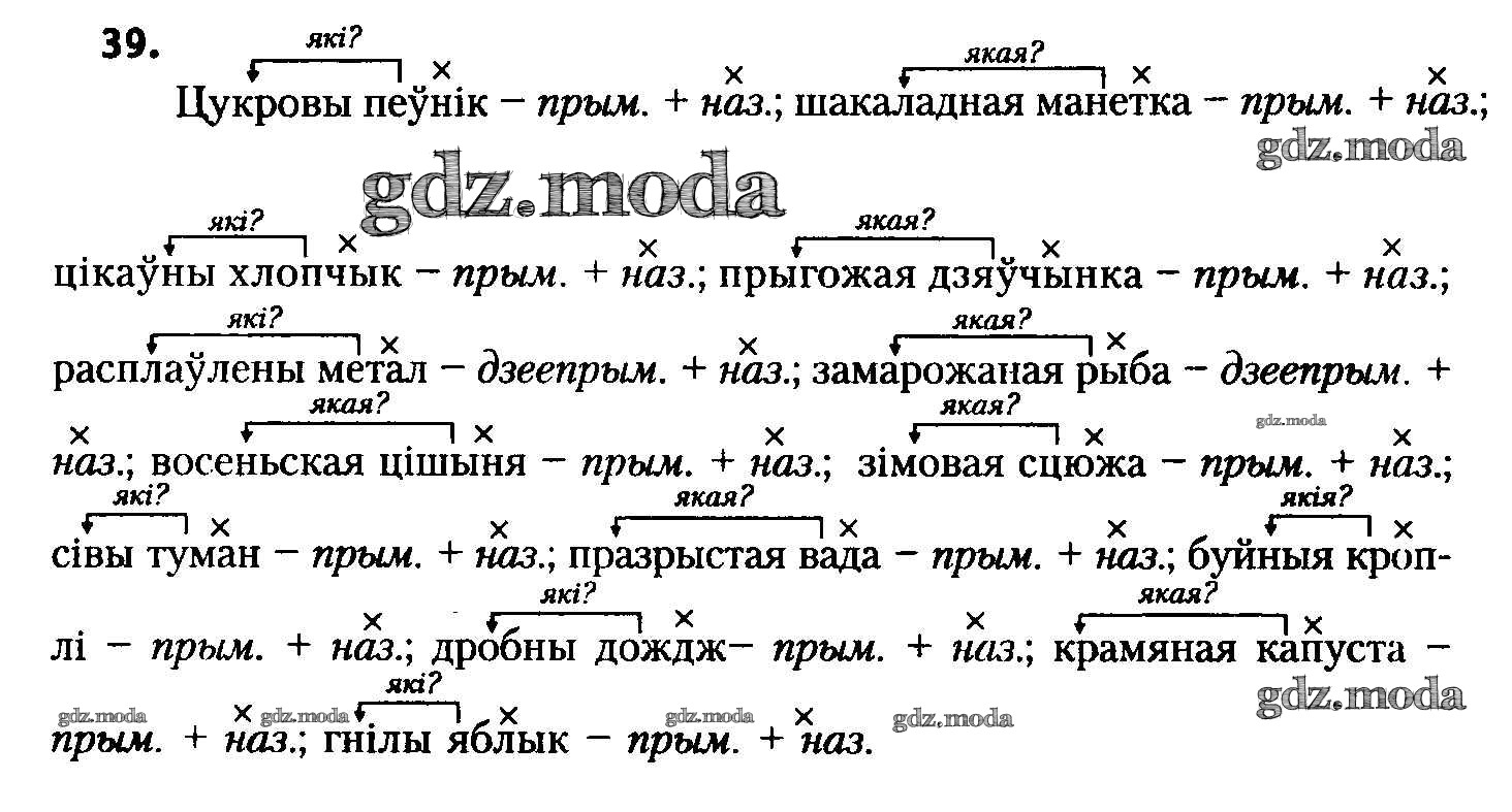 ГДЗ решение к заданию № 39 Белоруская мова 8 класс Бадзевіч З.І. Национальный институт образования 2015 ФГОС бесплатно на гдз.мода!