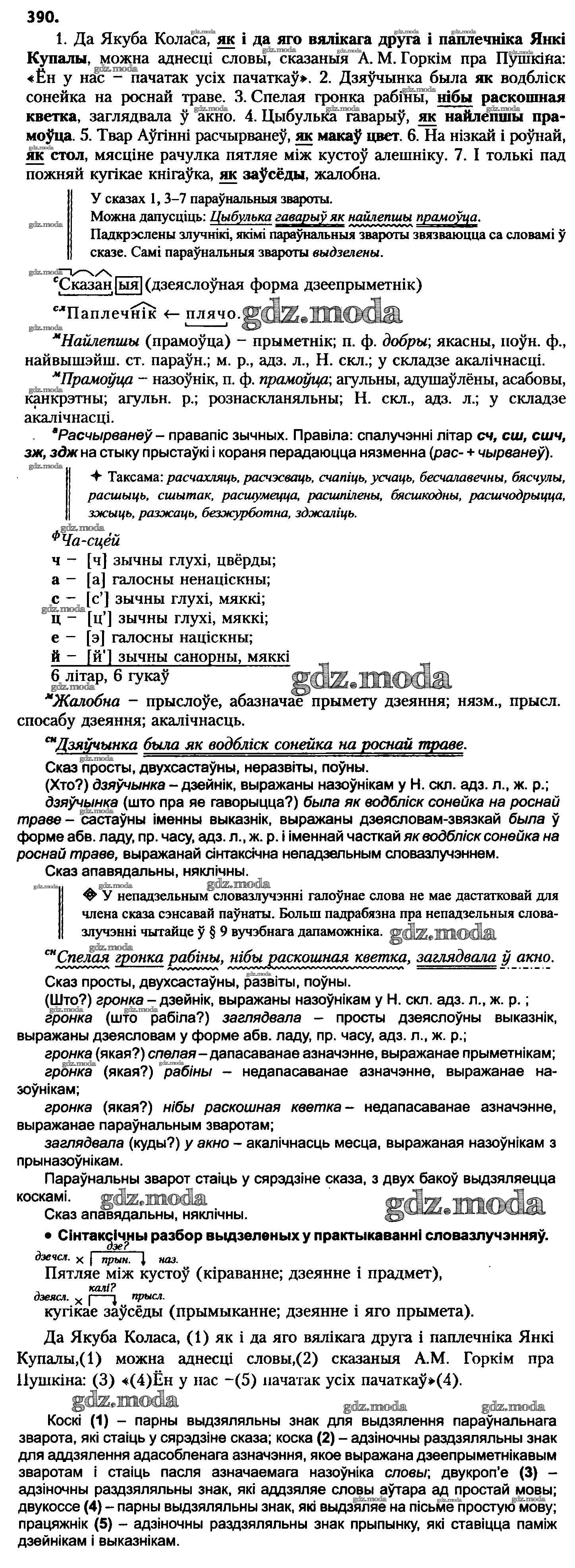 ГДЗ решение к заданию № 390 Белоруская мова 8 класс Бадзевіч З.І. Национальный институт образования 2015 ФГОС бесплатно на гдз.мода!