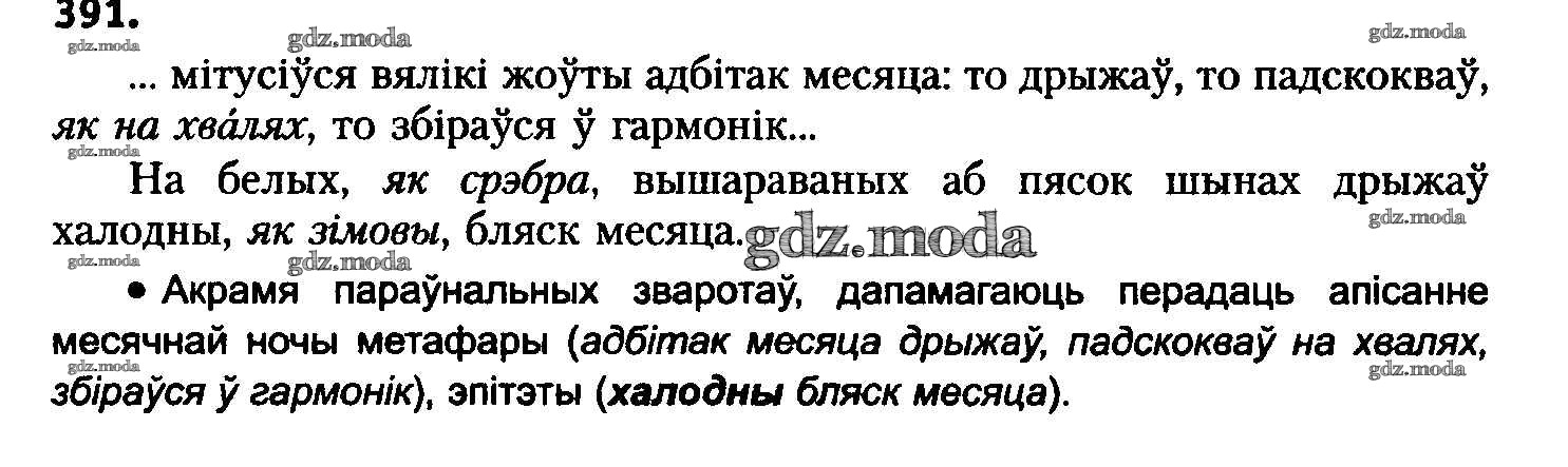 ГДЗ решение к заданию № 391 Белоруская мова 8 класс Бадзевіч З.І. Национальный институт образования 2015 ФГОС бесплатно на гдз.мода!