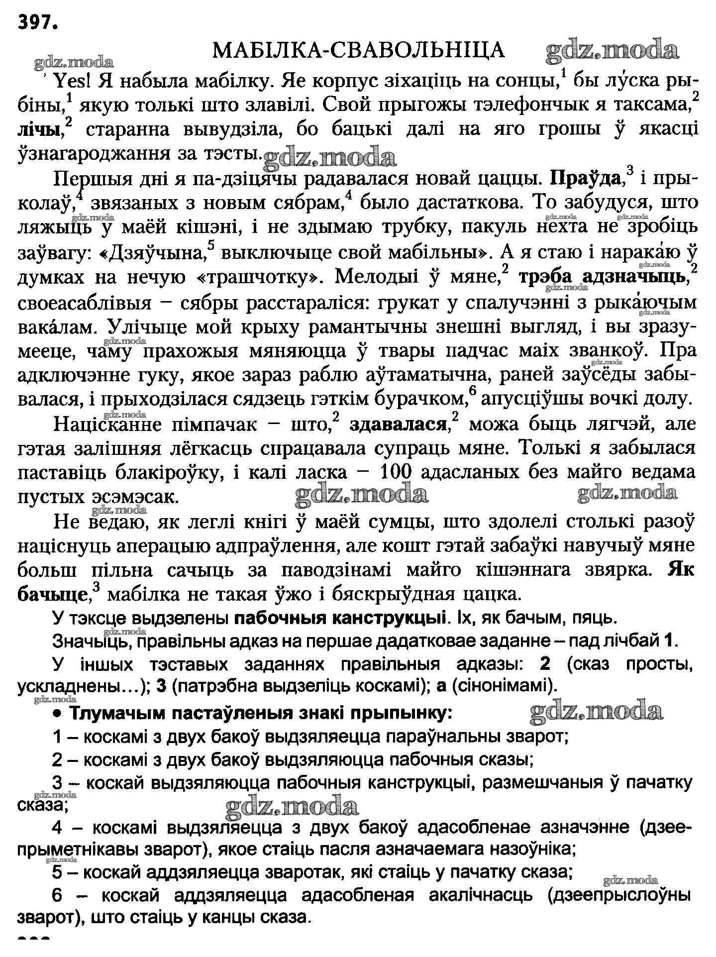 ГДЗ решение к заданию № 397 Белоруская мова 8 класс Бадзевіч З.І. Национальный институт образования 2015 ФГОС бесплатно на гдз.мода!
