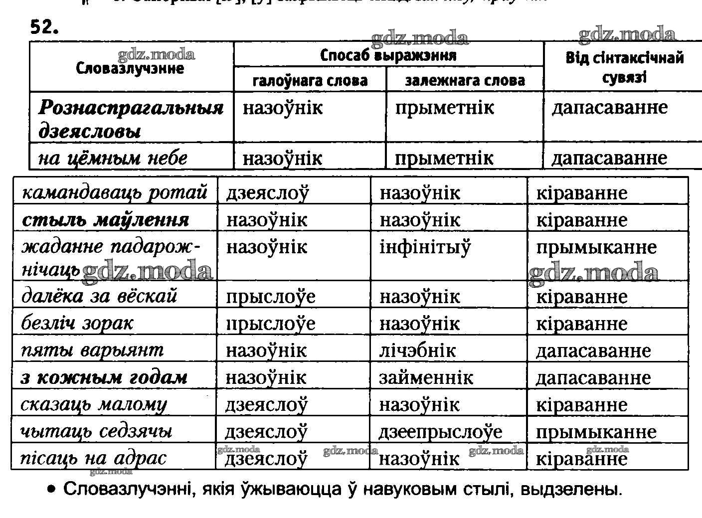 ГДЗ решение к заданию № 52 Белоруская мова 8 класс Бадзевіч З.І. Национальный институт образования 2015 ФГОС бесплатно на гдз.мода!