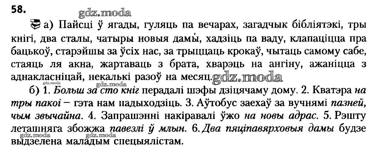 ГДЗ решение к заданию № 58 Белоруская мова 8 класс Бадзевіч З.І. Национальный институт образования 2015 ФГОС бесплатно на гдз.мода!