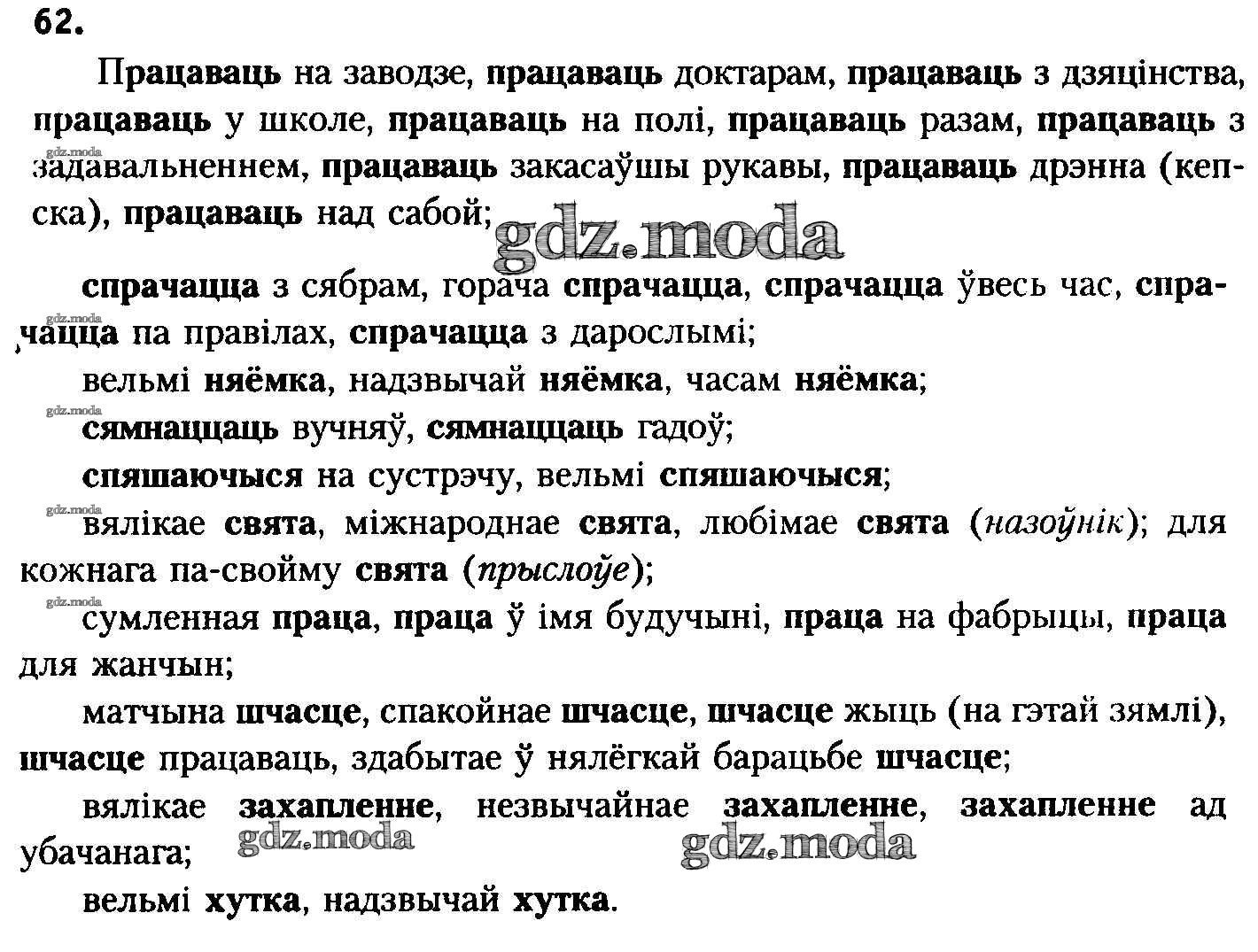 ГДЗ решение к заданию № 62 Белоруская мова 8 класс Бадзевіч З.І. Национальный институт образования 2015 ФГОС бесплатно на гдз.мода!