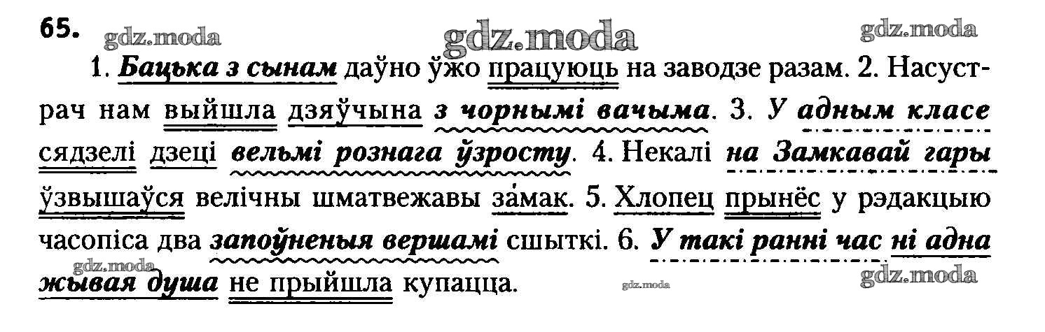 ГДЗ решение к заданию № 65 Белоруская мова 8 класс Бадзевіч З.І. Национальный институт образования 2015 ФГОС бесплатно на гдз.мода!