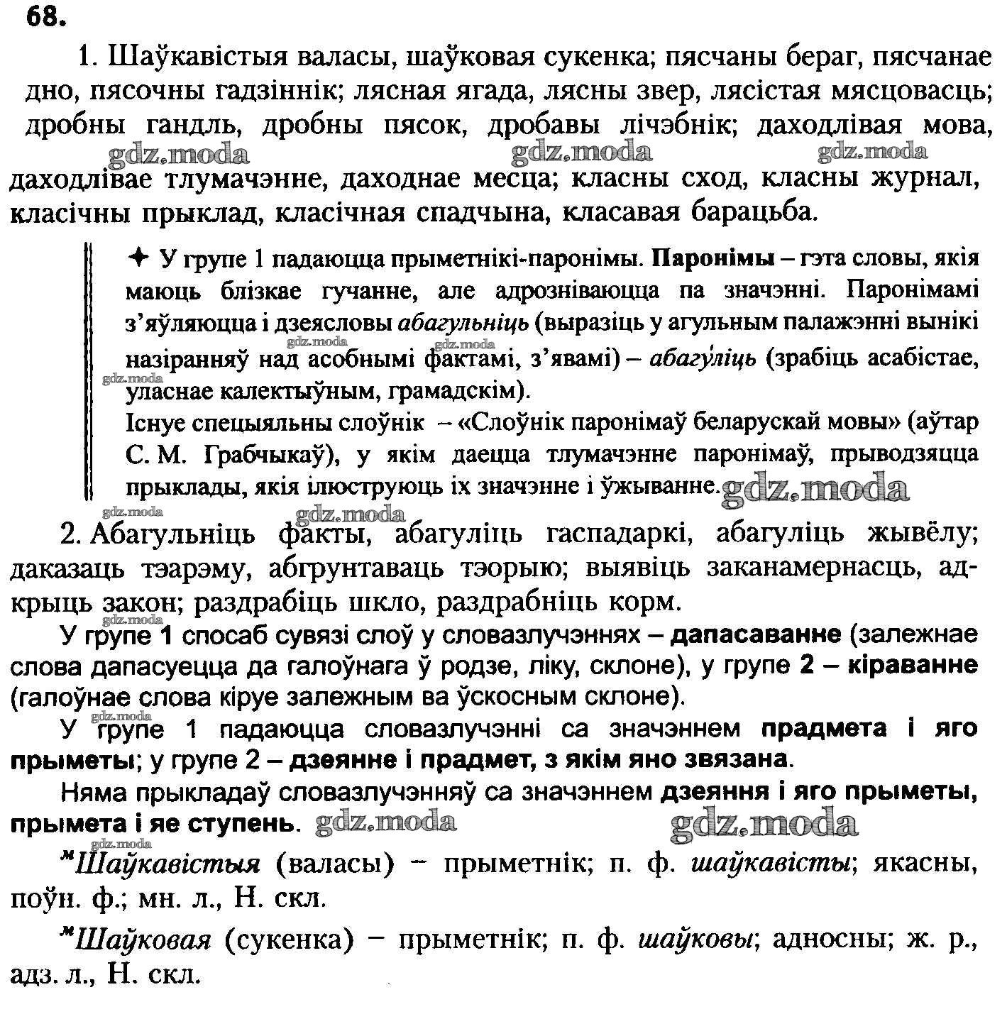 ГДЗ решение к заданию № 68 Белоруская мова 8 класс Бадзевіч З.І. Национальный институт образования 2015 ФГОС бесплатно на гдз.мода!