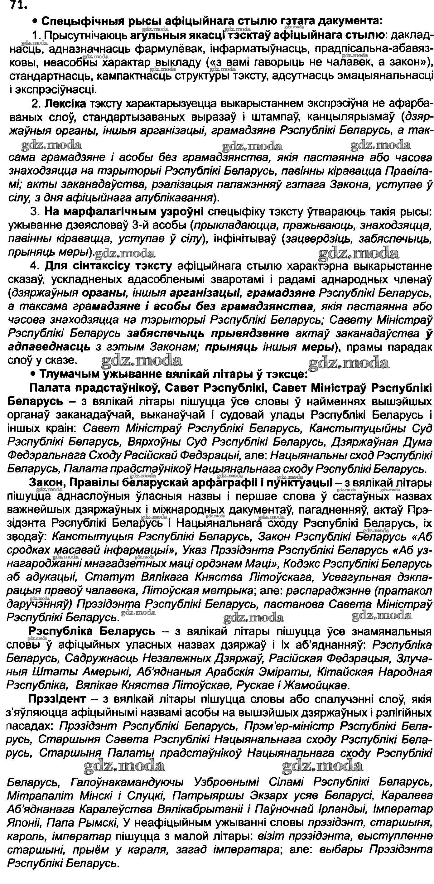 ГДЗ решение к заданию № 71 Белоруская мова 8 класс Бадзевіч З.І. Национальный институт образования 2015 ФГОС бесплатно на гдз.мода!