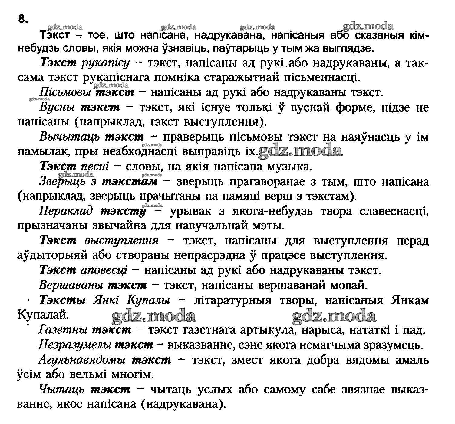 ГДЗ решение к заданию № 8 Белоруская мова 8 класс Бадзевіч З.І. Национальный институт образования 2015 ФГОС бесплатно на гдз.мода!