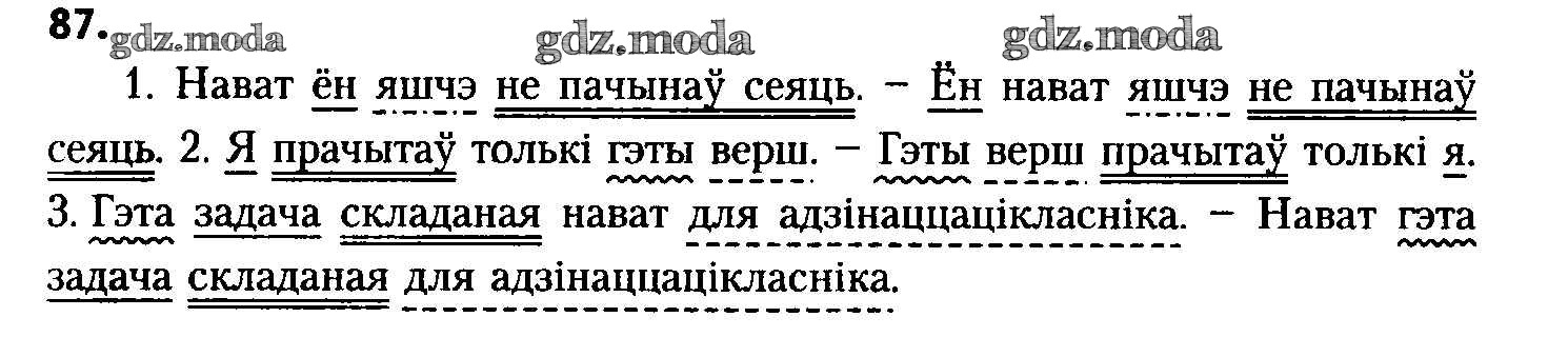 ГДЗ решение к заданию № 87 Белоруская мова 8 класс Бадзевіч З.І. Национальный институт образования 2015 ФГОС бесплатно на гдз.мода!