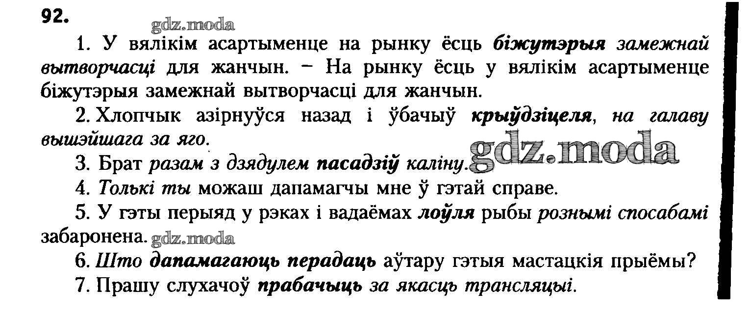 ГДЗ решение к заданию № 92 Белоруская мова 8 класс Бадзевіч З.І. Национальный институт образования 2015 ФГОС бесплатно на гдз.мода!