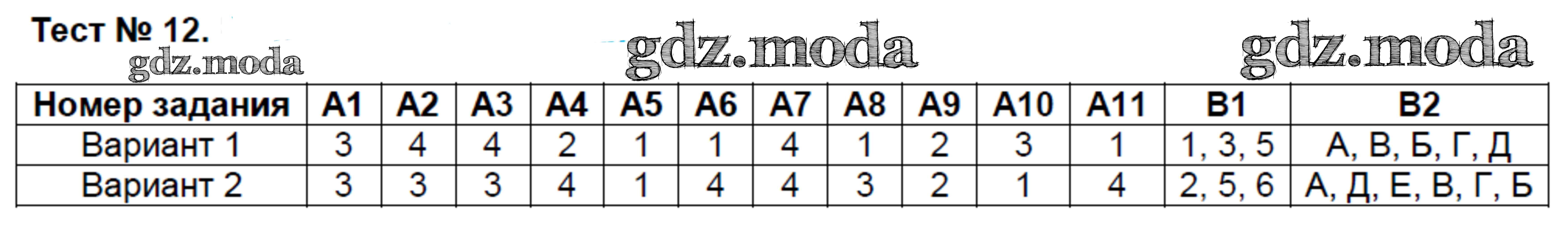 ГДЗ решение к заданию № 12 Биология 8 класс КИМ Богданов Н.А. ВАКО 2017 ФГОС бесплатно на гдз.мода!