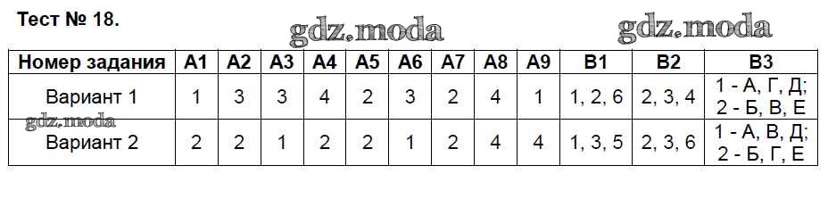 ГДЗ решение к заданию № 18 Биология 8 класс КИМ Богданов Н.А. ВАКО 2017 ФГОС бесплатно на гдз.мода!