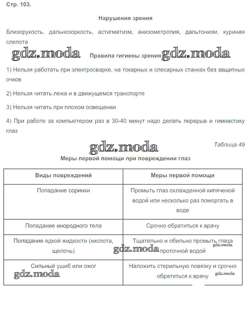 ГДЗ решение к заданию № 103 Биология 8 класс рабочая тетрадь Бодрова Н.Ф. М-книга 2017 ФГОС бесплатно на гдз.мода!