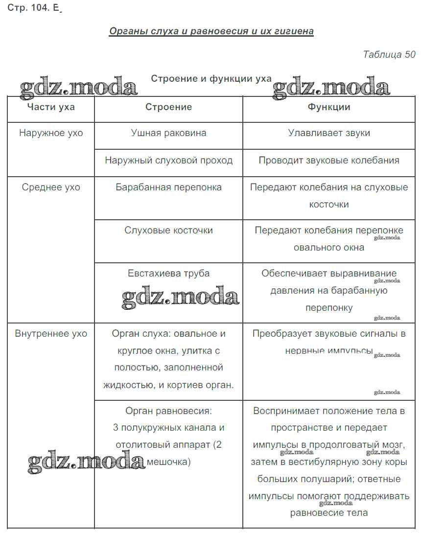 ГДЗ решение к заданию № 104 Биология 8 класс рабочая тетрадь Бодрова Н.Ф. М-книга 2017 ФГОС бесплатно на гдз.мода!