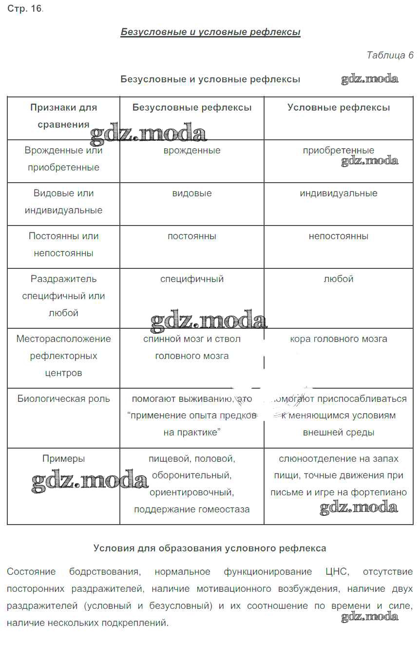ГДЗ решение к заданию № 16 Биология 8 класс рабочая тетрадь Бодрова Н.Ф. М-книга 2017 ФГОС бесплатно на гдз.мода!