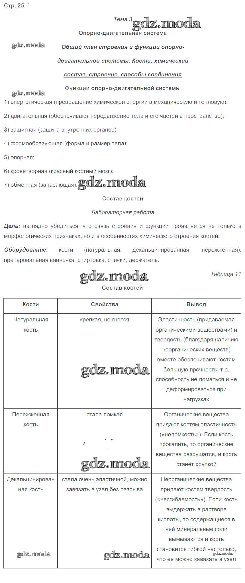 ГДЗ решение к заданию № 25 Биология 8 класс рабочая тетрадь Бодрова Н.Ф. М-книга 2017 ФГОС бесплатно на гдз.мода!