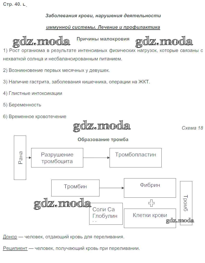 ГДЗ решение к заданию № 40 Биология 8 класс рабочая тетрадь Бодрова Н.Ф. М-книга 2017 ФГОС бесплатно на гдз.мода!