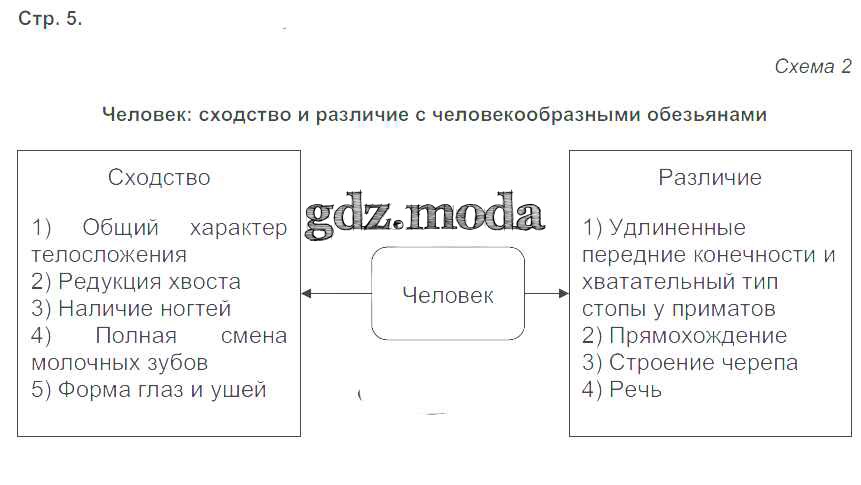 ГДЗ решение к заданию № 5 Биология 8 класс рабочая тетрадь Бодрова Н.Ф. М-книга 2017 ФГОС бесплатно на гдз.мода!