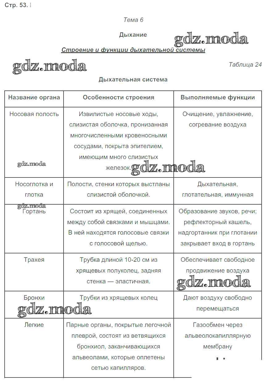 ГДЗ решение к заданию № 53 Биология 8 класс рабочая тетрадь Бодрова Н.Ф. М-книга 2017 ФГОС бесплатно на гдз.мода!