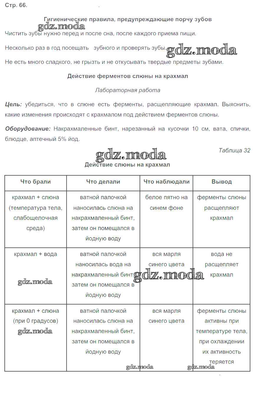 ГДЗ решение к заданию № 66 Биология 8 класс рабочая тетрадь Бодрова Н.Ф. М-книга 2017 ФГОС бесплатно на гдз.мода!