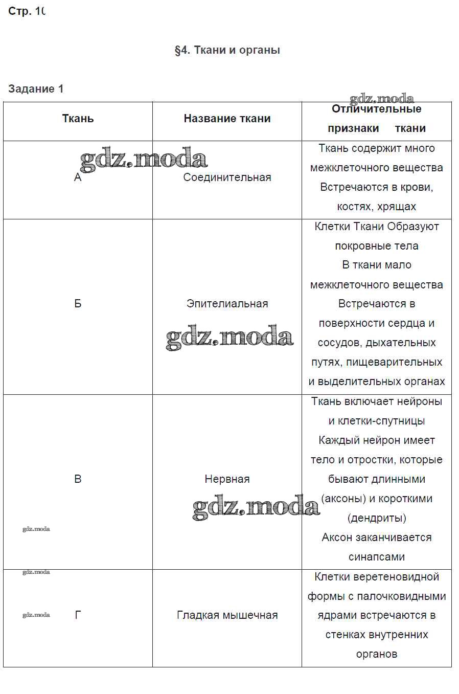 ГДЗ решение к заданию № 10 Биология 8 класс рабочая тетрадь Маш Р.Д. Вентана-граф 2019 Часть 1, Часть 2 ФГОС бесплатно на гдз.мода!