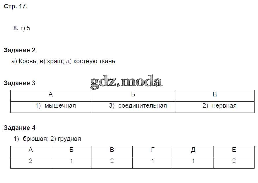 ГДЗ решение к заданию № 17 Биология 8 класс рабочая тетрадь Маш Р.Д. Вентана-граф 2019 Часть 1, Часть 2 ФГОС бесплатно на гдз.мода!