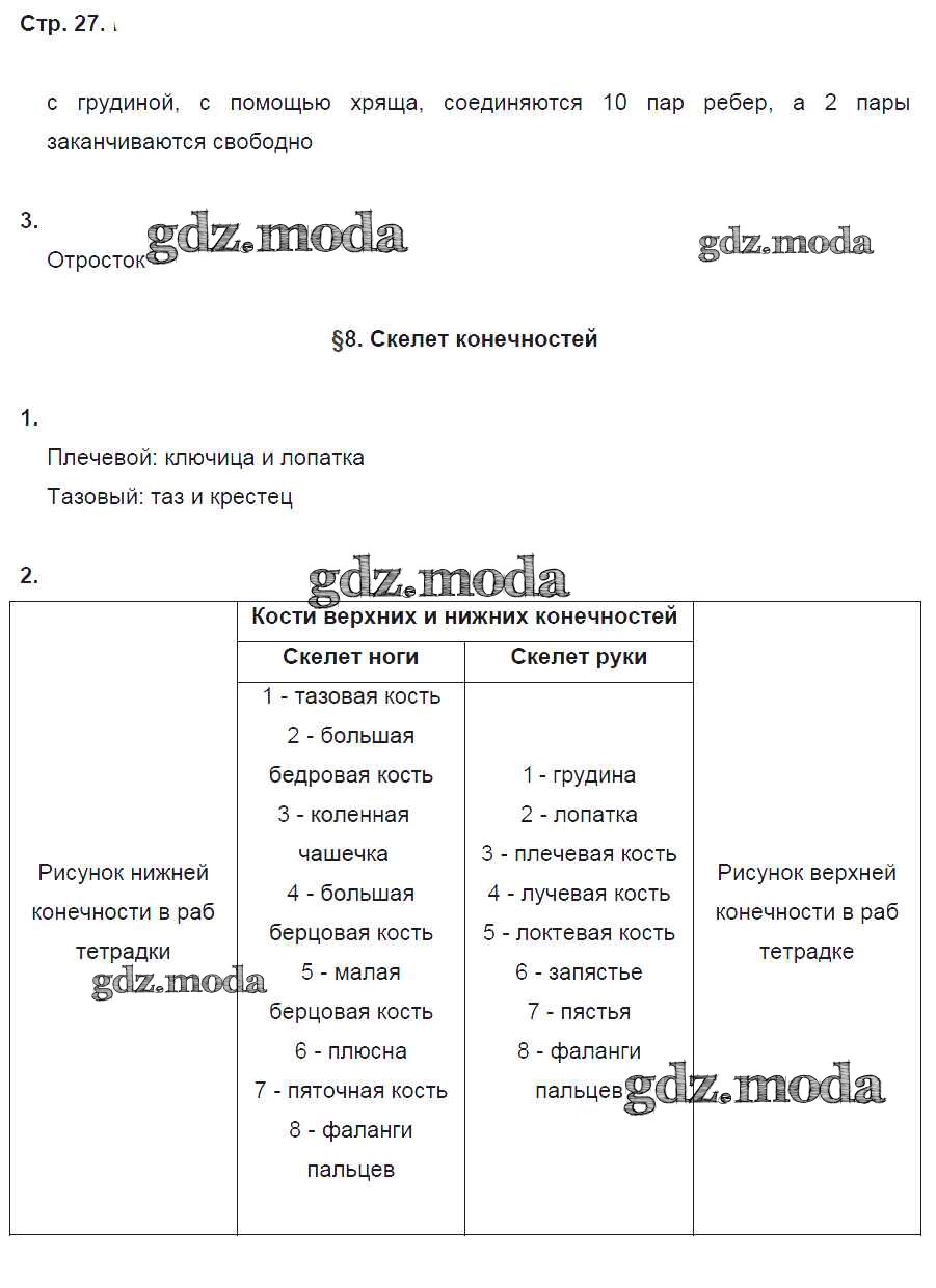 ГДЗ решение к заданию № 27 Биология 8 класс рабочая тетрадь Маш Р.Д. Вентана-граф 2019 Часть 1, Часть 2 ФГОС бесплатно на гдз.мода!