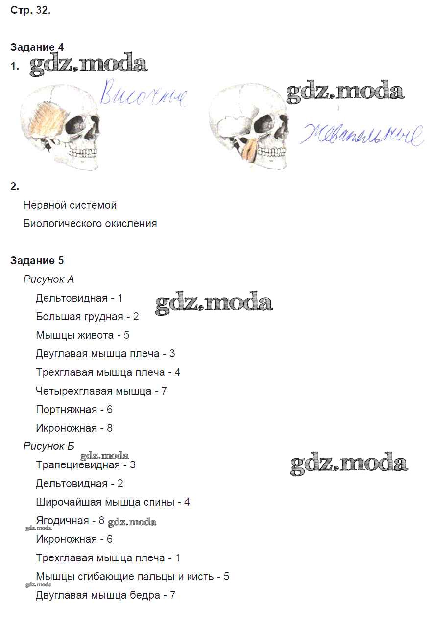 ГДЗ решение к заданию № 32 Биология 8 класс рабочая тетрадь Маш Р.Д. Вентана-граф 2019 Часть 1, Часть 2 ФГОС бесплатно на гдз.мода!