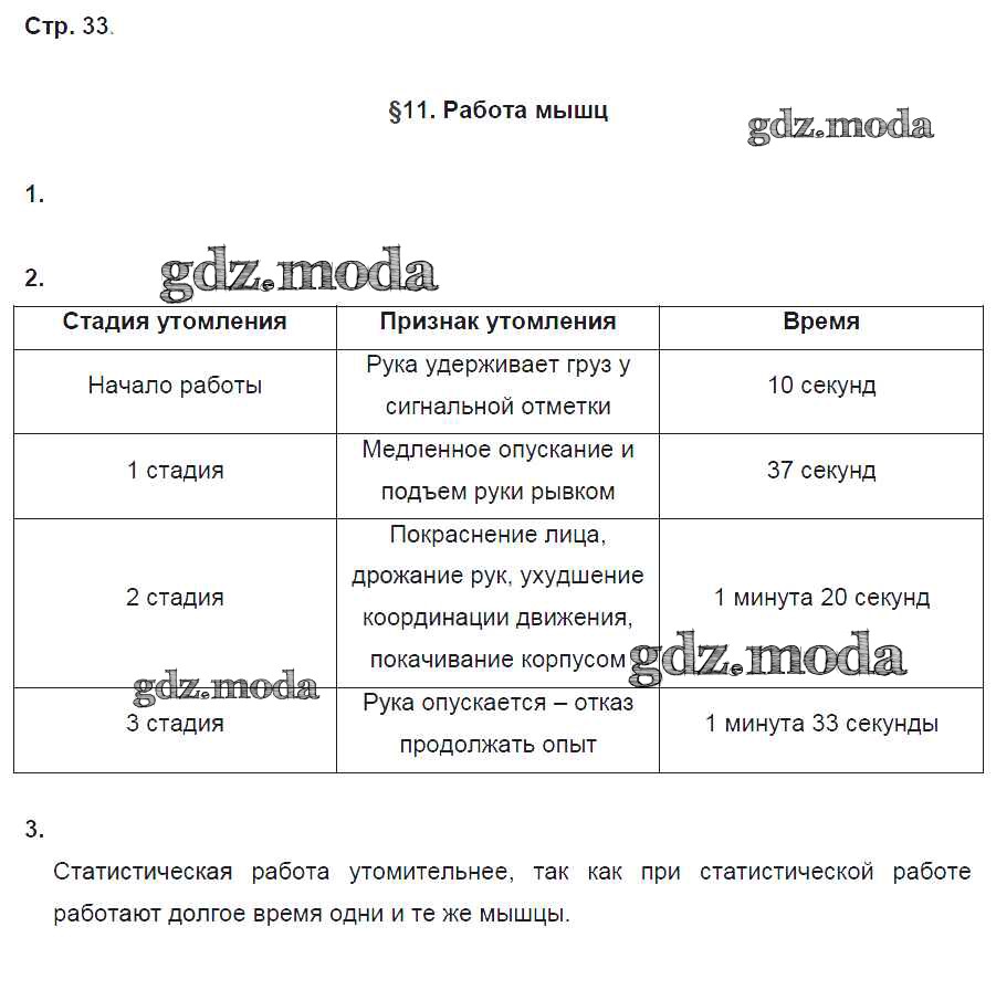 ГДЗ решение к заданию № 33 Биология 8 класс рабочая тетрадь Маш Р.Д. Вентана-граф 2019 Часть 1, Часть 2 ФГОС бесплатно на гдз.мода!