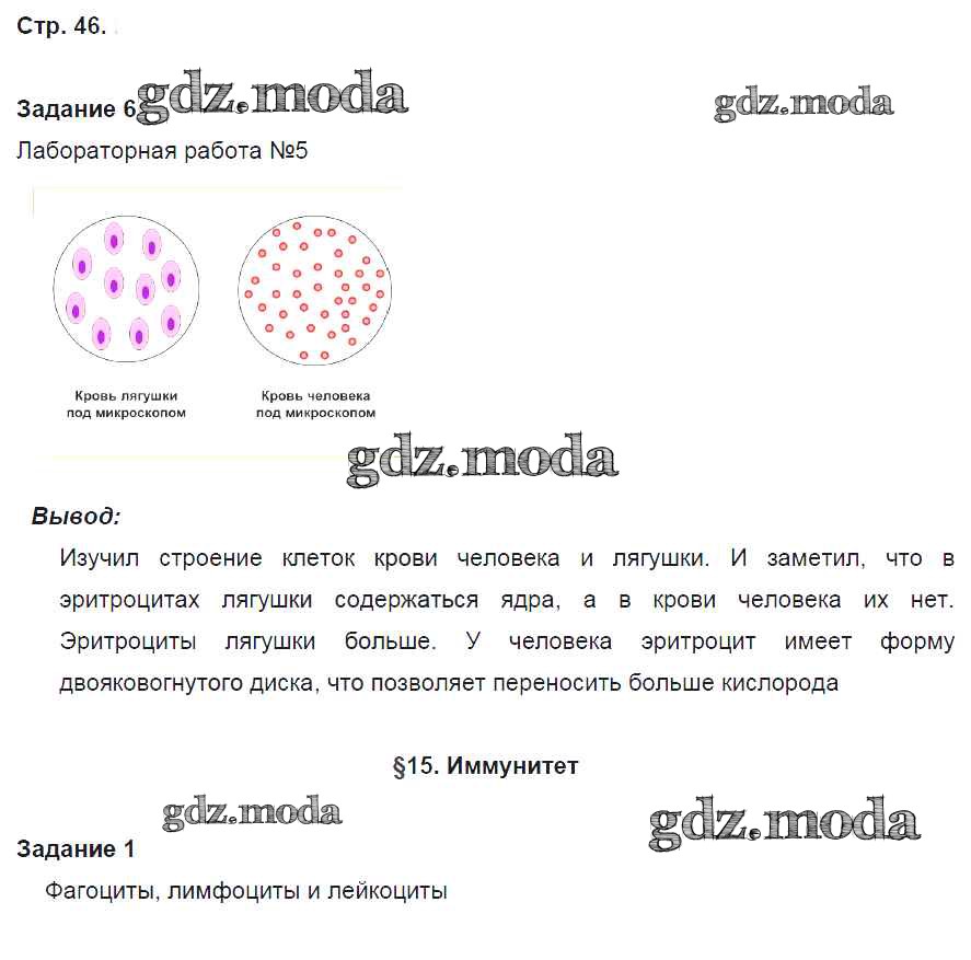ГДЗ решение к заданию № 46 Биология 8 класс рабочая тетрадь Маш Р.Д. Вентана-граф 2019 Часть 1, Часть 2 ФГОС бесплатно на гдз.мода!
