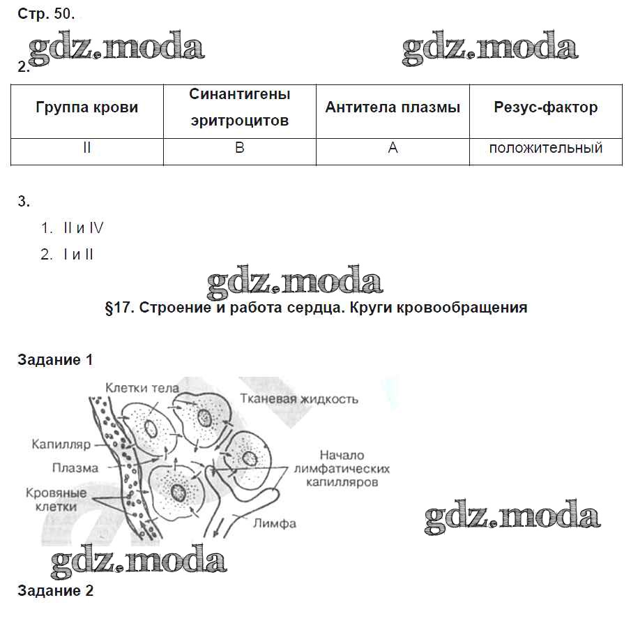 ГДЗ решение к заданию № 50 Биология 8 класс рабочая тетрадь Маш Р.Д. Вентана-граф 2019 Часть 1, Часть 2 ФГОС бесплатно на гдз.мода!