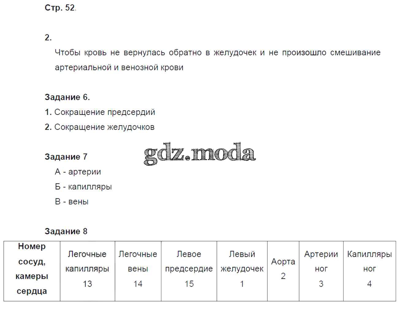 ГДЗ решение к заданию № 52 Биология 8 класс рабочая тетрадь Маш Р.Д. Вентана-граф 2019 Часть 1, Часть 2 ФГОС бесплатно на гдз.мода!