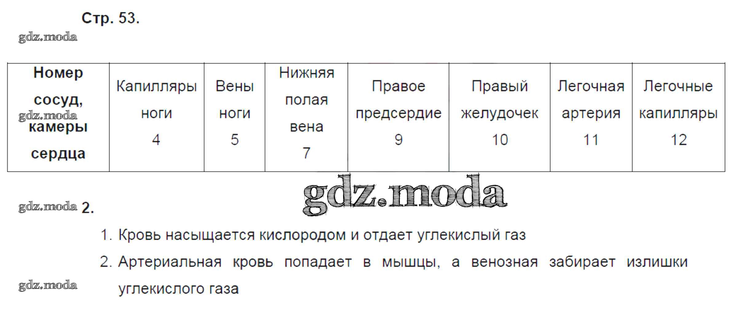 ГДЗ решение к заданию № 53 Биология 8 класс рабочая тетрадь Маш Р.Д. Вентана-граф 2019 Часть 1, Часть 2 ФГОС бесплатно на гдз.мода!